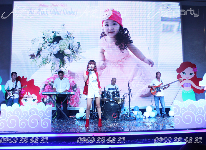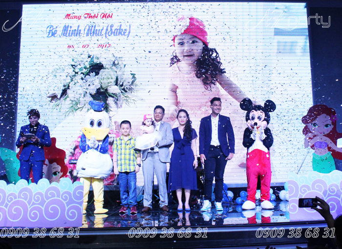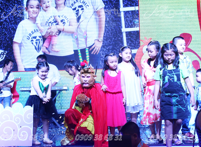 Bên cạnh những trang trí bắt mắt mà đội ngũ AZparty mang đến cho tiệc thôi nôi bé gái thì chúng tôi còn phục vụ cho bé Minh Như những dịch vụ kèm theo rất vui nhộn như MC hoạt náo, màn biểu diễn ca nhạc sôi động có ca sĩ, nhóm múa và đặc biệt các bé khách mời rất thích với hình ảnh của Tôn Ngộ Không xuất hiện trên sân khấu.